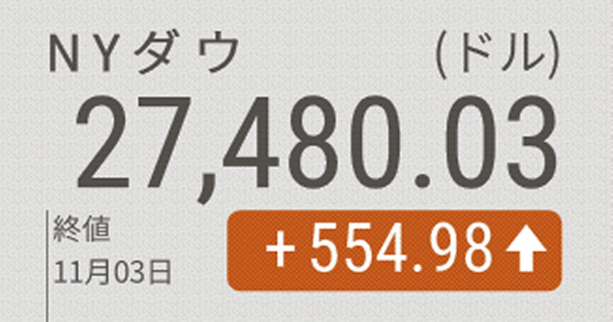 NYダウ554ドル高 「バイデン氏勝利」期待で全面高 - 日本経済新聞