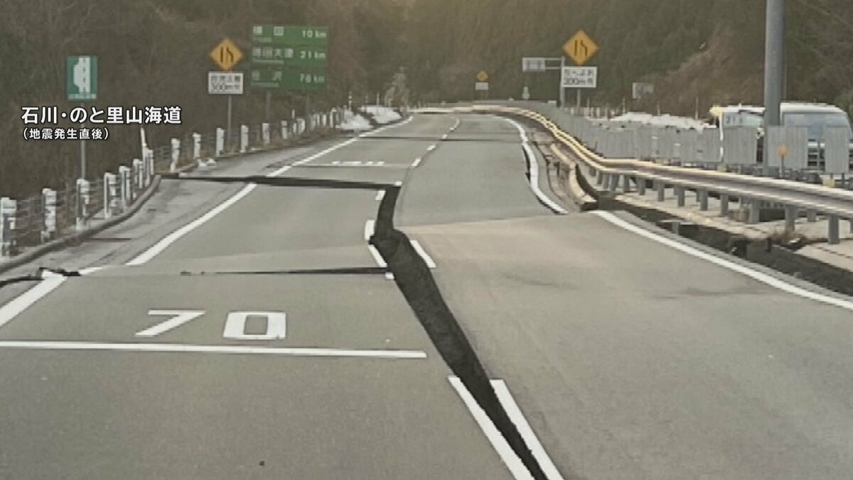 「のと里山海道では、ところどころ道路の陥没が起きていて、一部の利用客は志賀町の西山パーキングエリアなどに退避しているということです。」