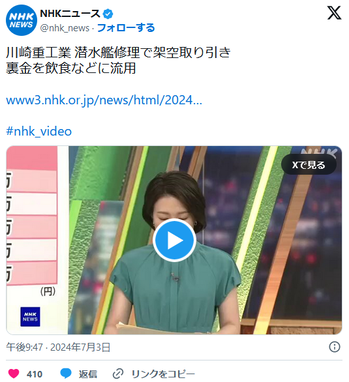 「潜水艦の修理で、取引先企業との間で架空の取り引きを行い、捻出した裏金を飲食などに不正に流用していたと発表しました。裏金は10数億円」