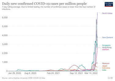 夜遊び 【悲惨】テレビが大絶賛の接種率が高い韓国の陽性者数が断トツ世界1位で世界の27%を占める!