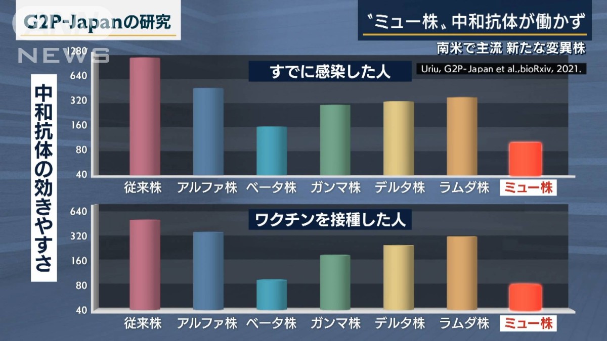 「南米で主流となっている『ミュー株』について、東京大学医科学研究所は、体内で感染や重症化を防ぐ“中和抗体”の効果がほぼないとする分析結果を発表しました。」