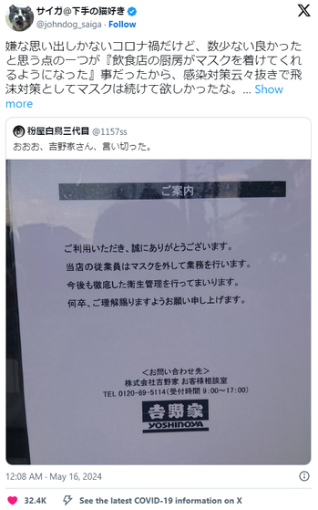 吉野家がマスクを止め知能が低いコロ脳やワク信がまた大騒ぎ!