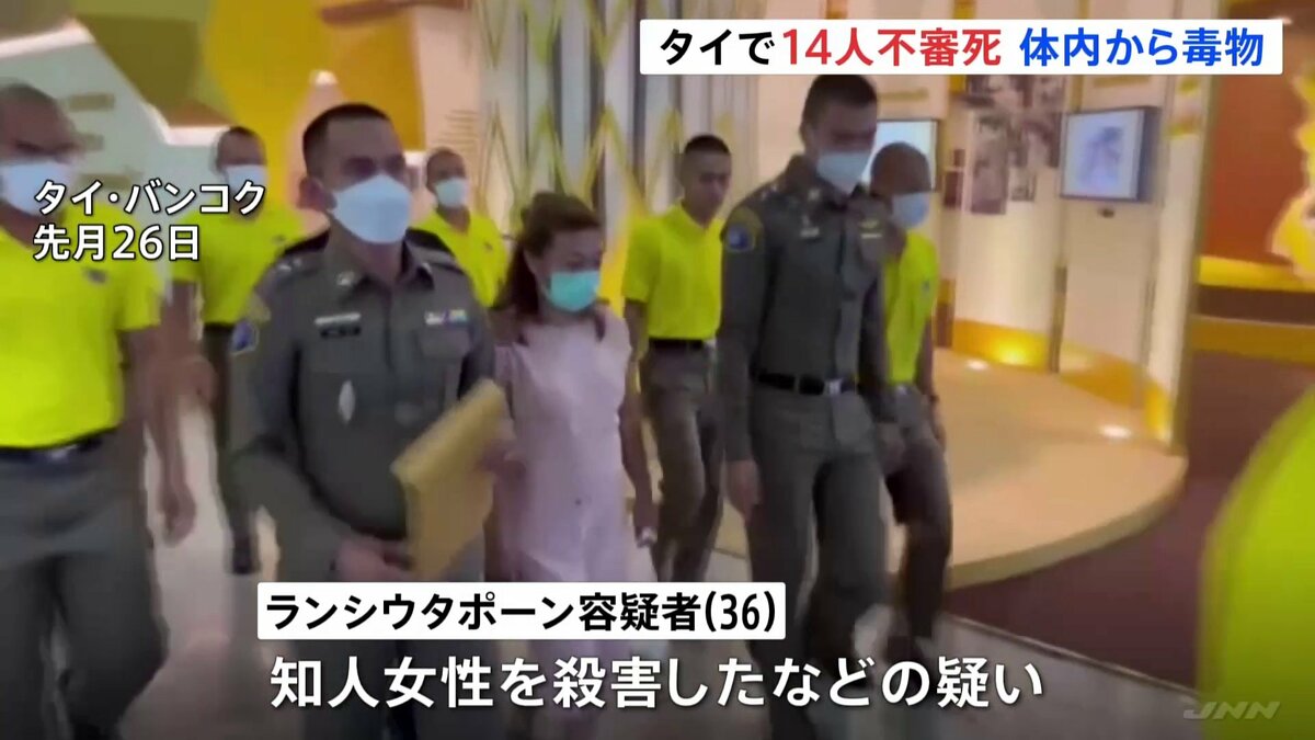タイで毒物を使い知人を殺害したなどとして、36歳の女と元夫の警察幹部が逮捕されました。容疑者の周辺では、14人もの不審死が相次いでいます。逮捕されたランシウタポーン容疑者(36)は先月、知人女性を殺害した…